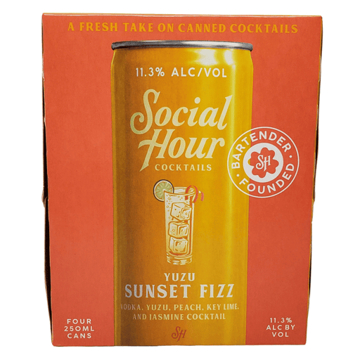 SKU: 102034 Social Hour CocktailsSocial Hour CocktailsYuzu Sunset Fizz 11.3% ABV Our #1 seller! This vibrant vodka cocktail captures the essence of a sunlit evening in a can, uniqu...