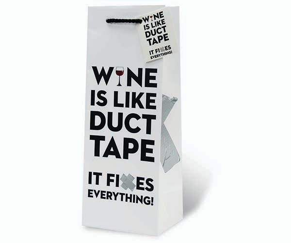 This illustrative bag, modeled after actual wine spills and stains, is a new take on the wine bag. With satin ribbon handles and a matching gift tag, this bag is the perfect accessory for any bottle.